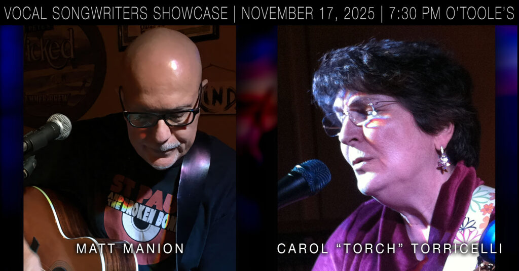 The November showcase was a doubleheader event with Carol (Torch) Torricelli and Matt Manion teaming up to present songs as a duet and as a single.